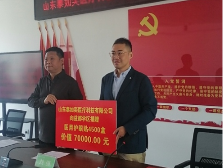4月25日上午,山东奕医药科技有限公司益都学区“爱心护眼”捐赠活动在北城学校进行,山东泰如奕医疗科技有限公司董事长孟超向学校捐赠价值70000万的护眼贴,参与捐赠仪式的有青州市益都学区主任刘强、北城学校的领导和老师、青州市中小企业家商会的贾云玺主 席、商会轮值主 席贺广英、办公室主任高慧芹、公益事业部部长侯英话、泰山队队长程文蕾、青城社工会长王英会、青城社工秘书长卜湘华等。